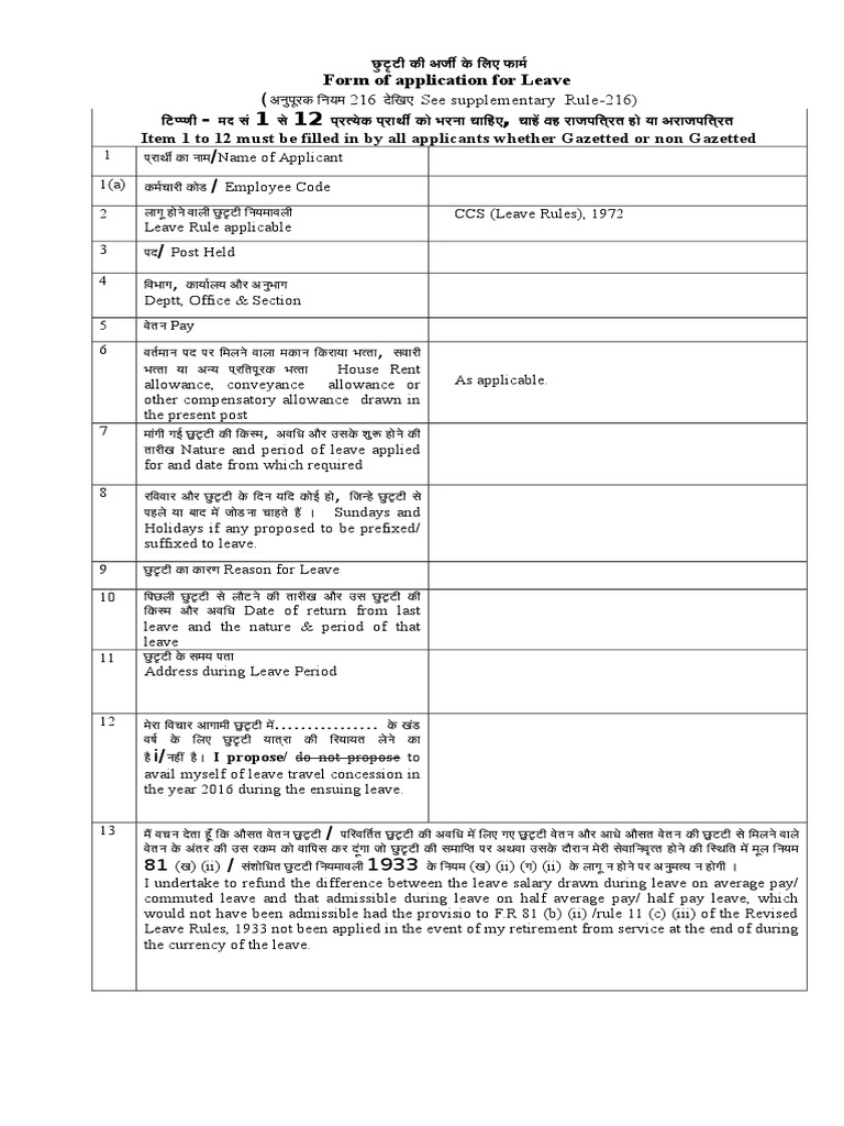Necessary El Application Form For Leave Or Extension Of Leave Earned Leave